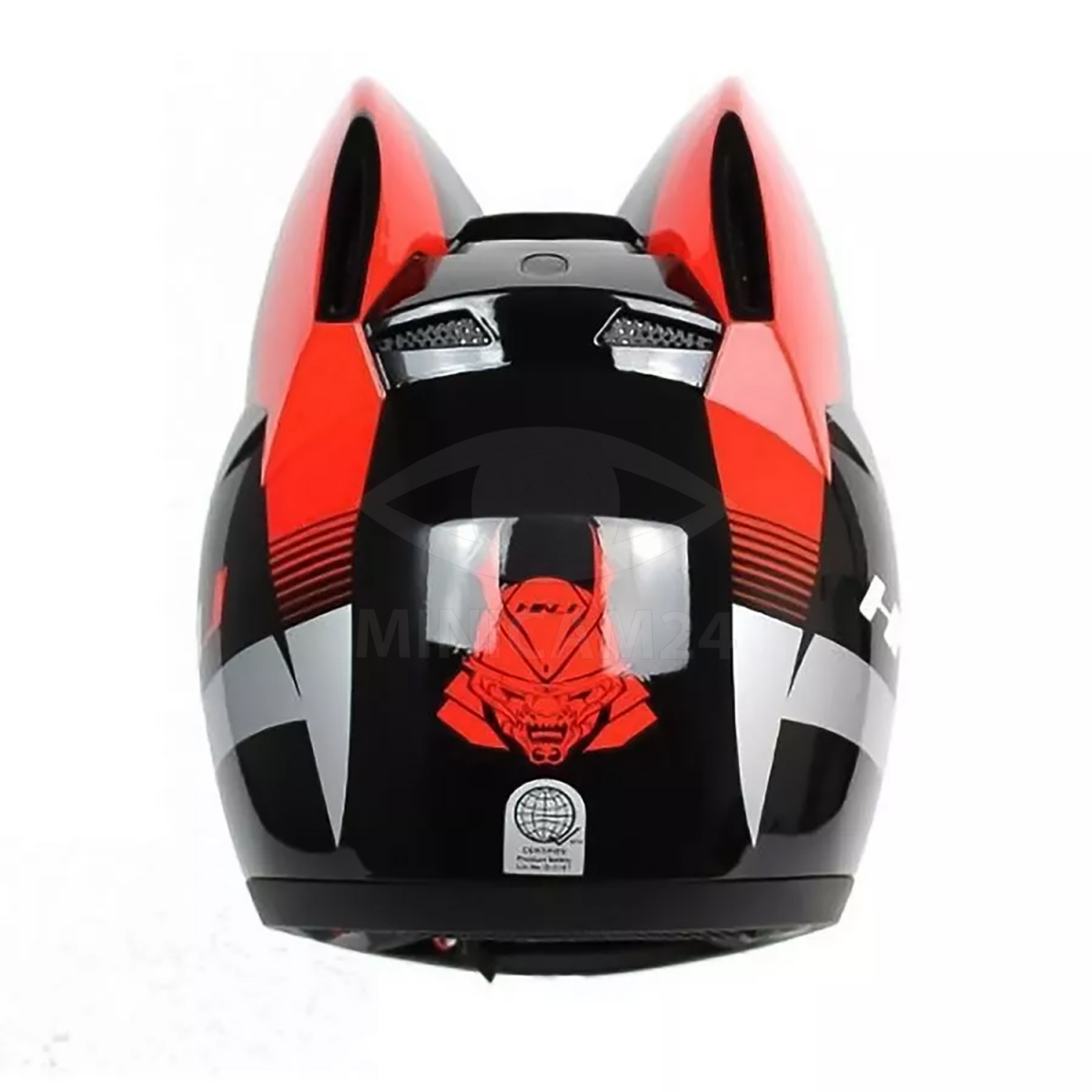 Мотошлем HNJ с кошачьими ушками красный, размер S